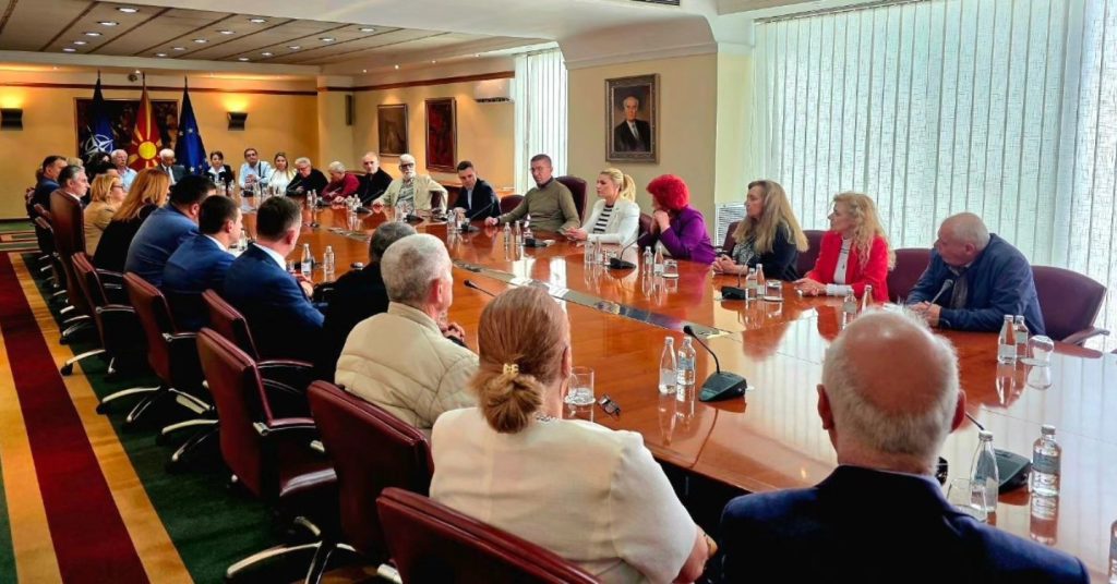 Делегацијата оствари разговор со премиерот Христијан Мицкоски, министерот за надворешни работи и трговија Тимчо Муцунски и заменик министерката за европски прашања Викторија Трајков.