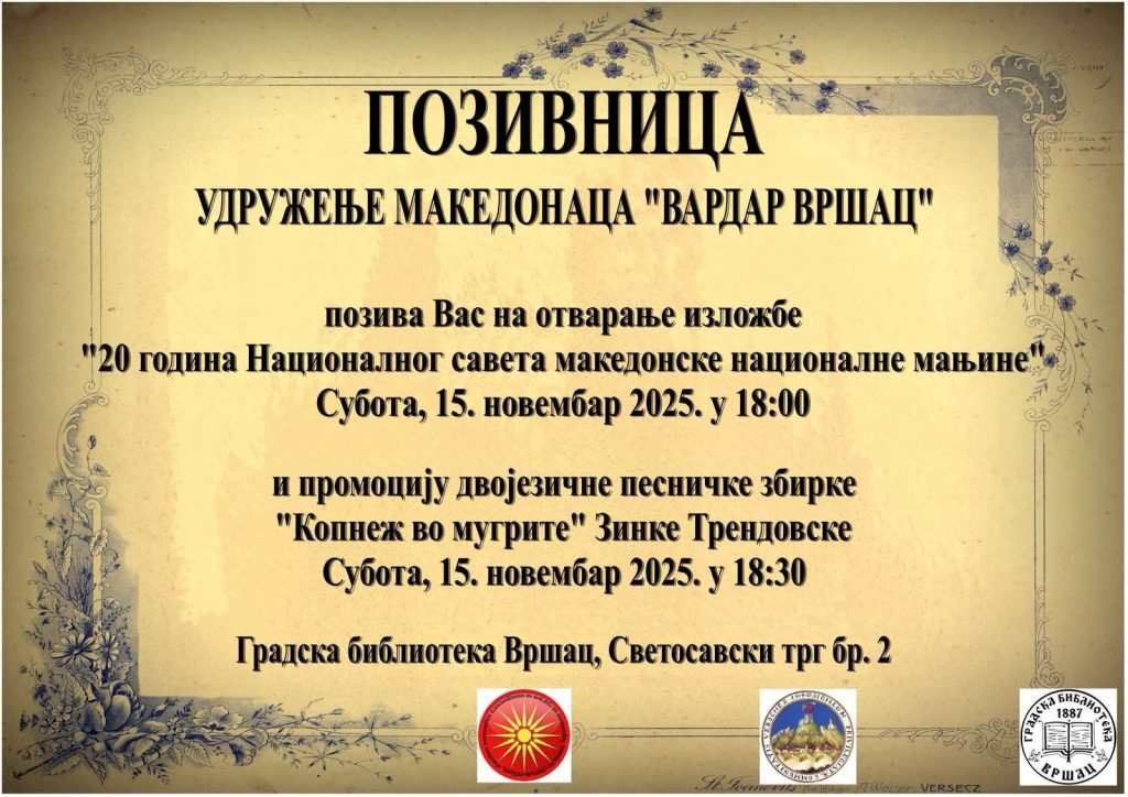 Овој текст го отвора серијалот прилози во рамки на проектот „Културен пејзаж на Македонците во Србија“, кој има за цел да ги осветли токму ваквите примери – локални, тивки, но суштински важни – и да придонесе кон поголема видливост на македонската заедница и нејзиниот придонес во културниот и општествениот живот на Србија.