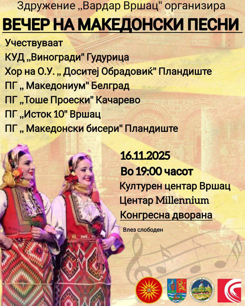Во мултикултурниот мозаик на Војводина, градот Вршац претставува средина во која со векови се испреплетуваат различни култури, јазици и традиции. Во таа разновидна општествена структура, македонската заедница – иако бројчено помала – има свое значајно место, особено преку активното дејствување на македонските здруженија кои се столб на зачувувањето на националниот идентитет и малцинските права.